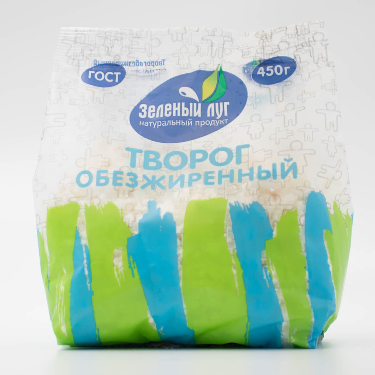 Творог Зеленый луг обезжиренный пл/пак 450г