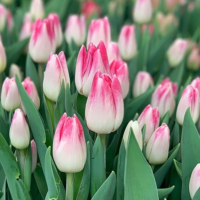 Шикарные тюльпаны класса Премиум. Бокал плотный, упругий, до 6 см. Раскрывается медленно, сохраняя овально-конусовидную собранную форму. Лепестки немахровые, атласные, с аккуратным, слегка волнистым, краем, что придает цветам нарядный, праздничный вид. Обладают дивным нежным сладким цветочным ароматом. Очень хорошо смотрятся в сочетании с другими цветами. Форма цветка крупная бокаловидная. Цвета бутонов: ярко-желтый, темно-красный, розовый, молочный с красно-розовыми перышками, с розовой расцветкой и светлым основанием бокала, оранжево-красный, красный чистый, нежным белый. Высота растения 45-50 см, высота бутона 4-6 см. Бутоны долго стоят в срезе до 15 дней. Выращены в России.