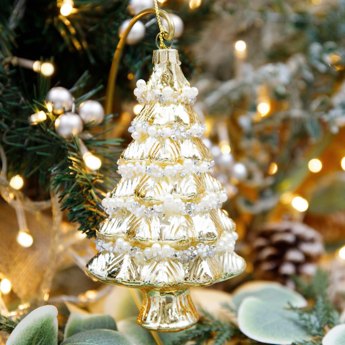 Украш елоч Холидей Классик Елочка жемчужно-золотая стек8,5х5,5х14,5см