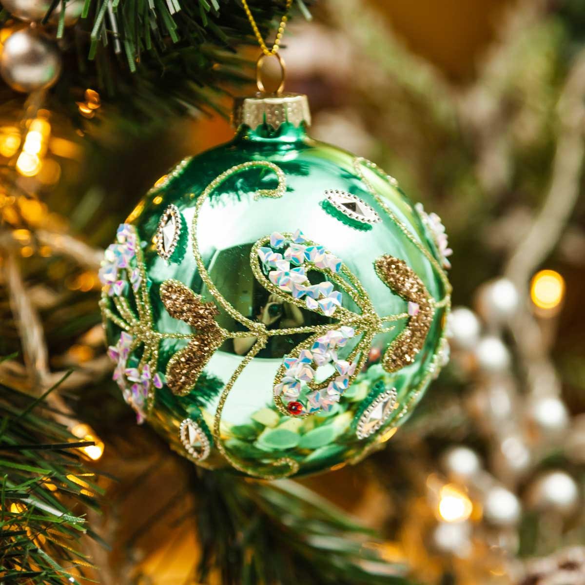 Украш елоч Холидей Классик Шар Лепестки мятный глянцевый стек 8см