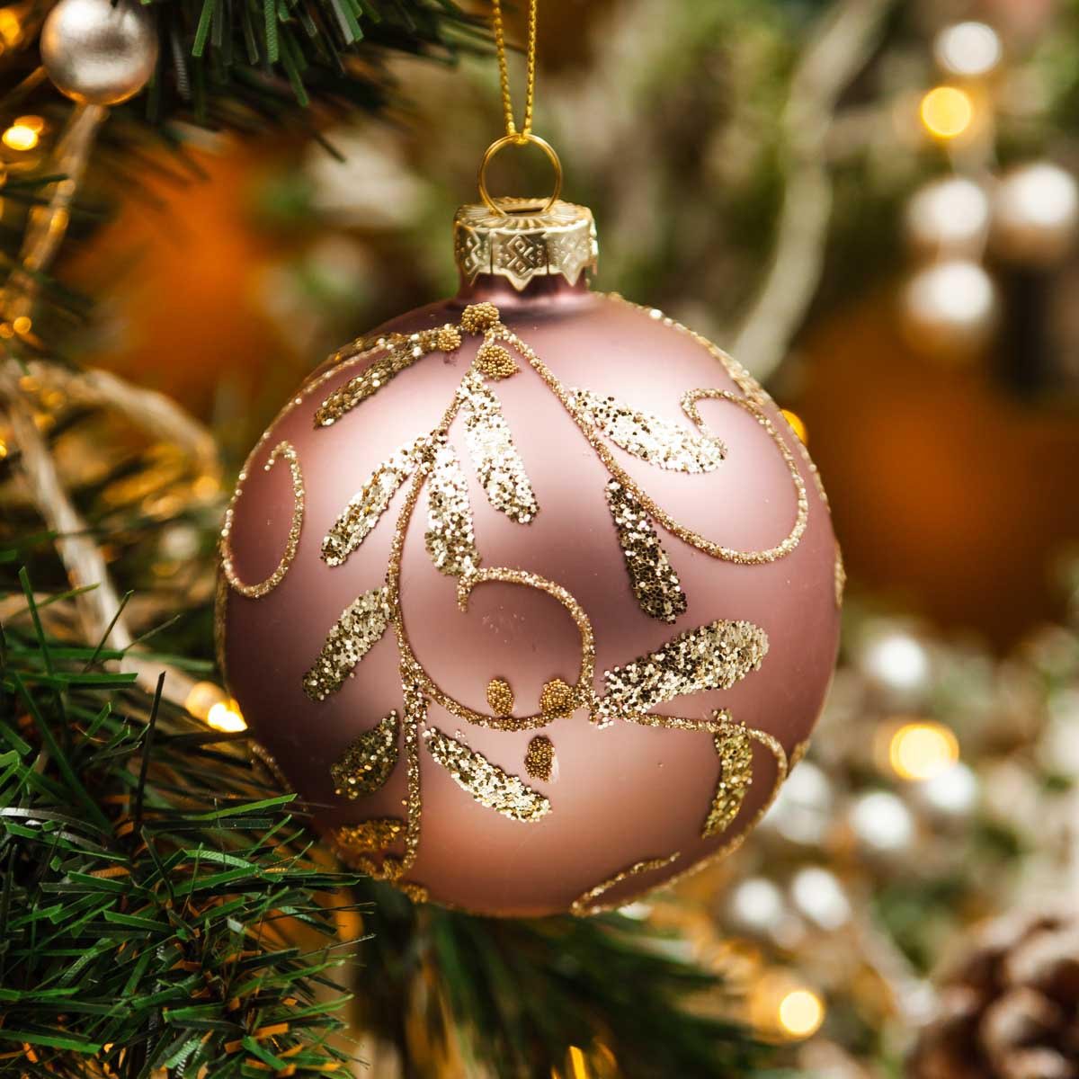 Украш елоч Холидей Классик Шар Пальметта капучино стекло 8см GY192