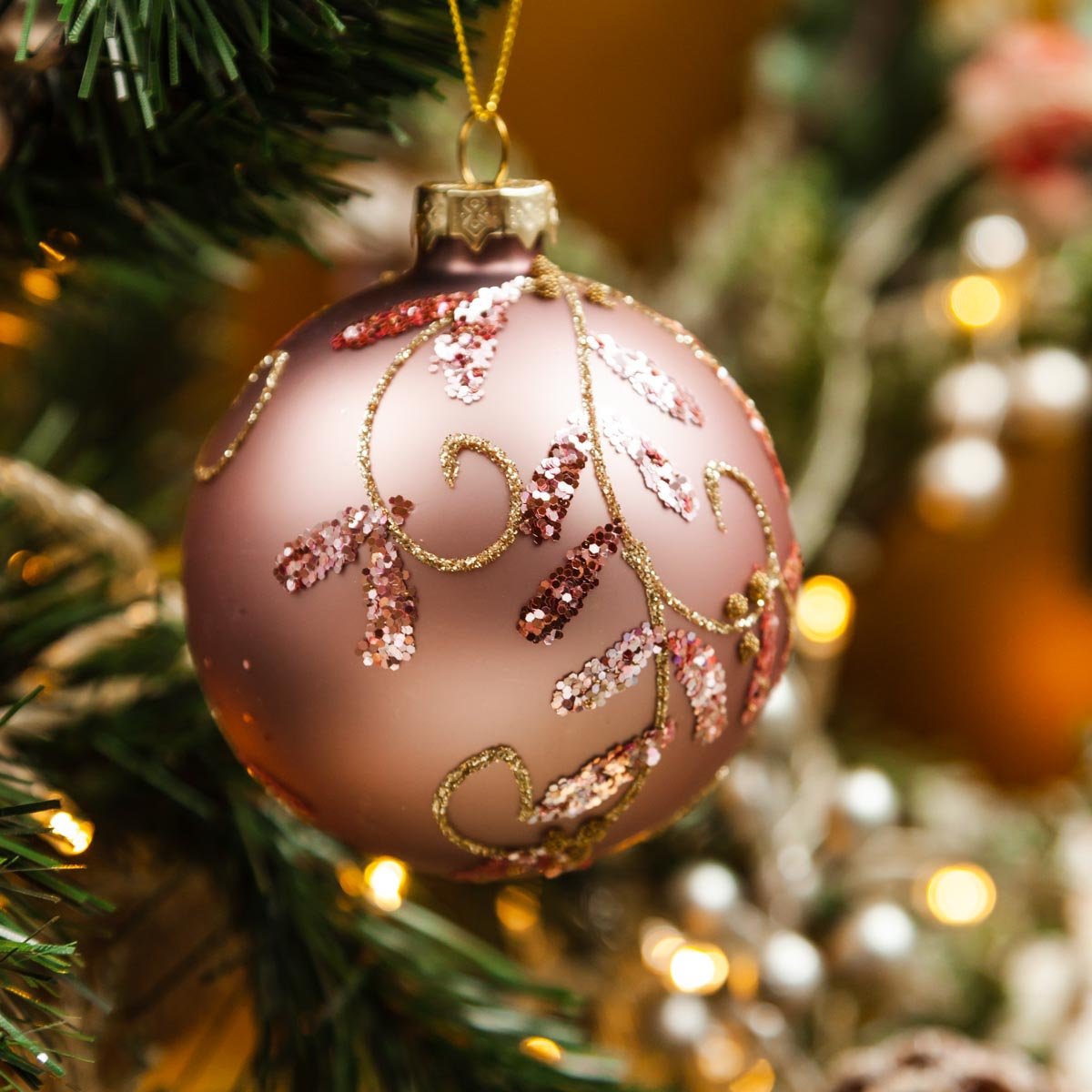 Украш елоч Холидей Классик Шар Пальметта лунно-роз матов стек 8см