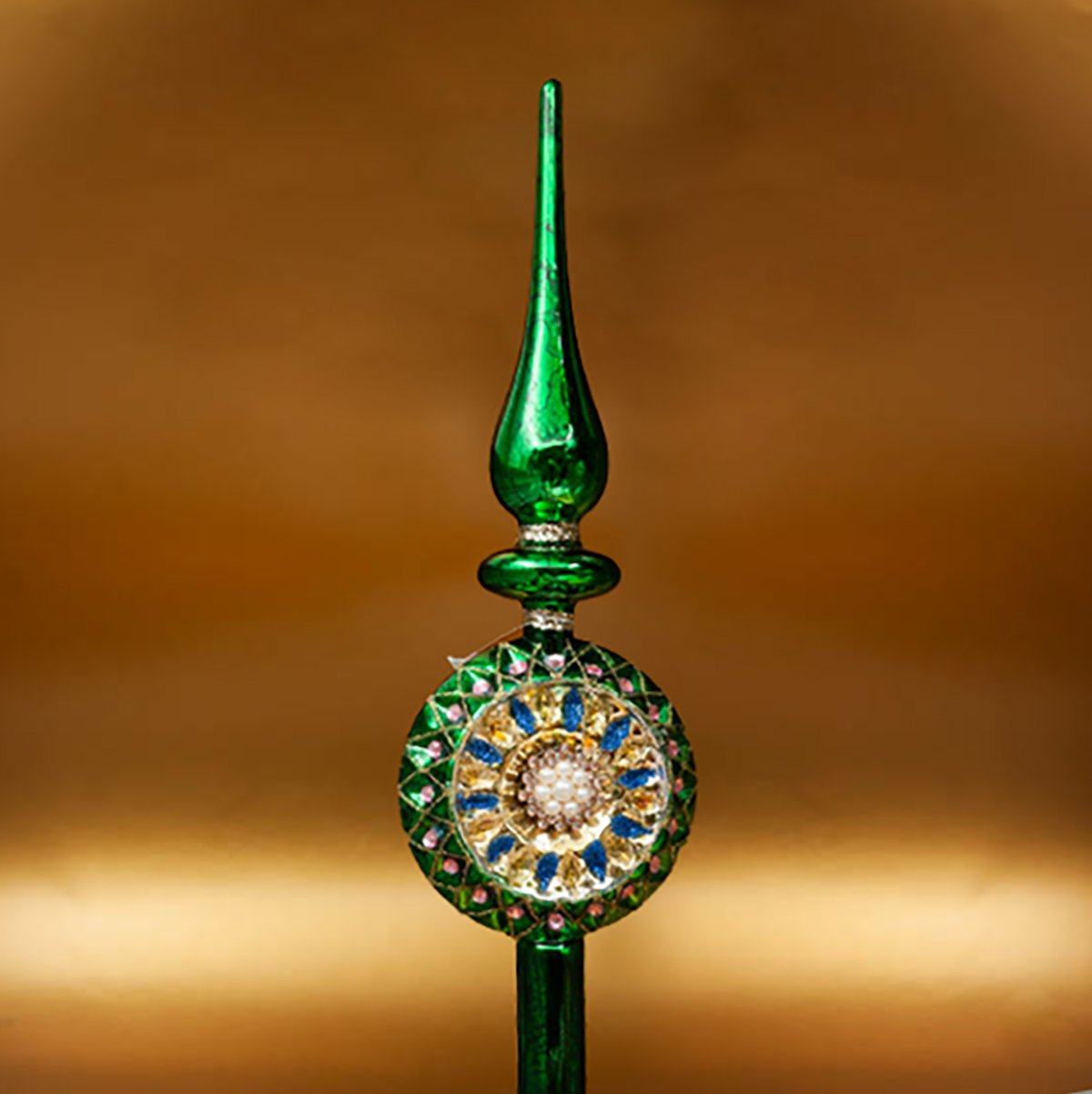 Украш елоч Холидей Классик Верхушка Люмьер зеленая винтаж стекло 9х4х29