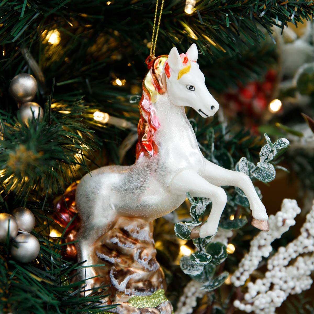 Украш елочХолидей Классик Лошадь Скалистых гор белая стек 14х5х15см