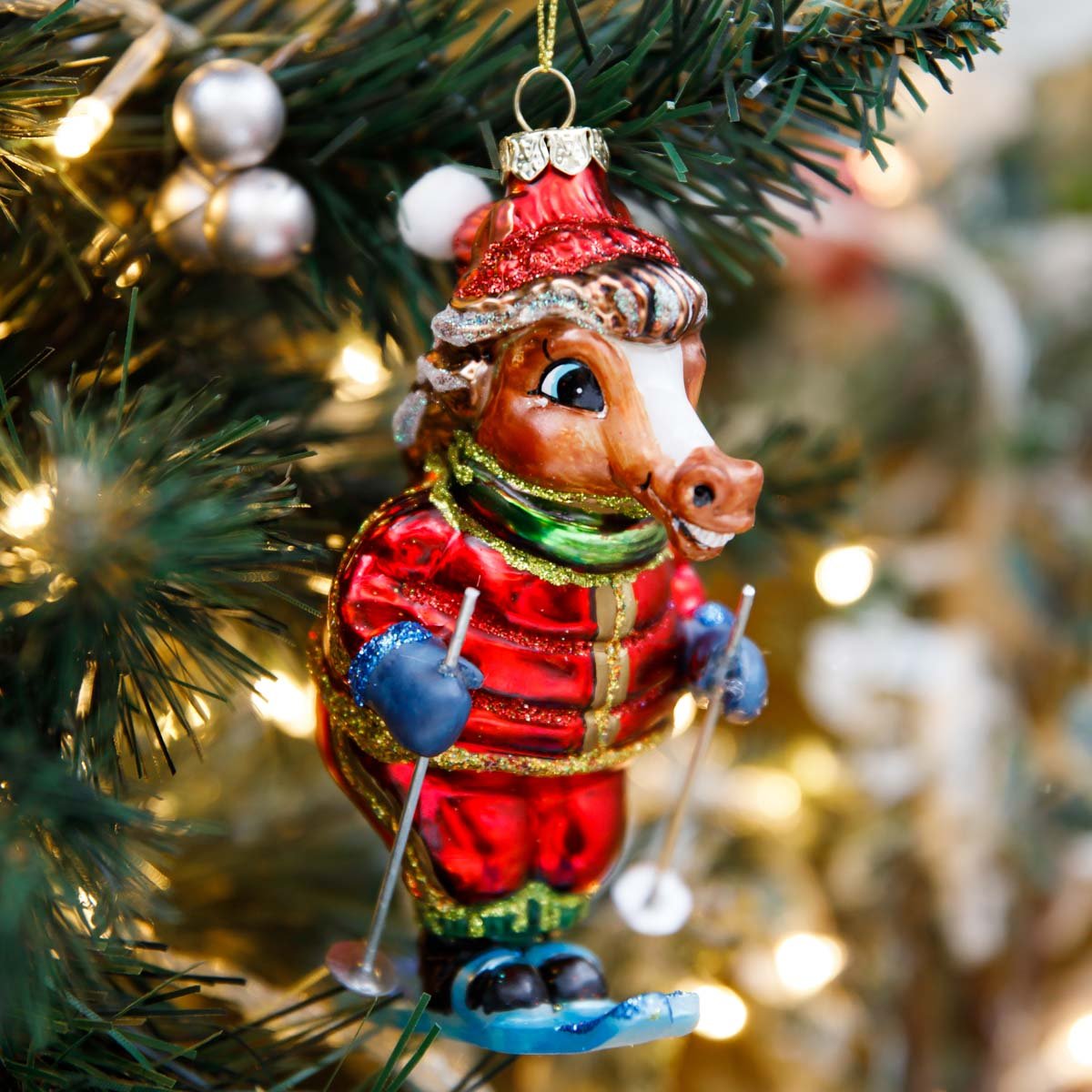 Украш елочХолидейКлассик Лошадь- лыжник стекло 9х6,5х12,5см 253972