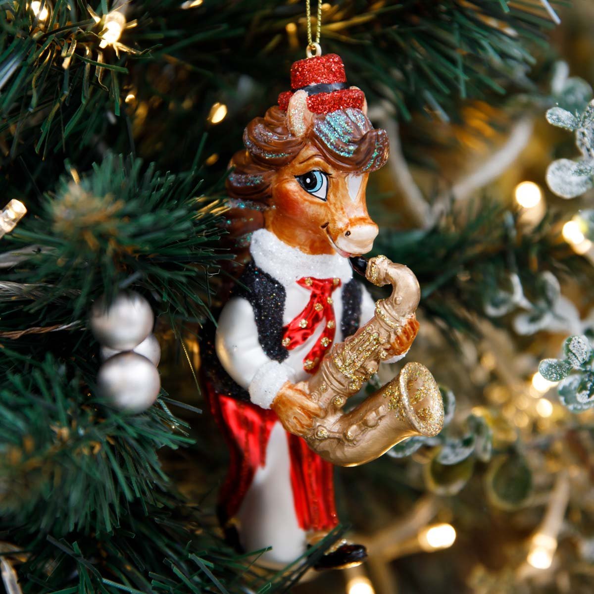 Украш елочХолидейКлассик Лошадь- саксофонист стекло 8х4,5х14см253983