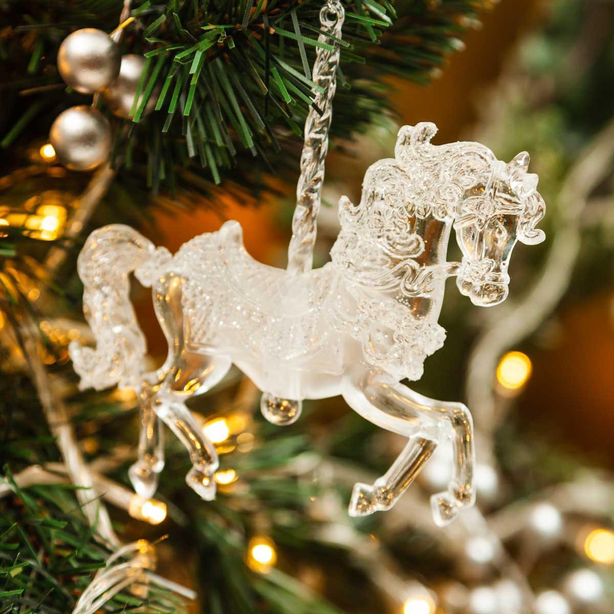 Украш елочХолидейКлассик Лошадка на карусели заснежен акрил 12х11см