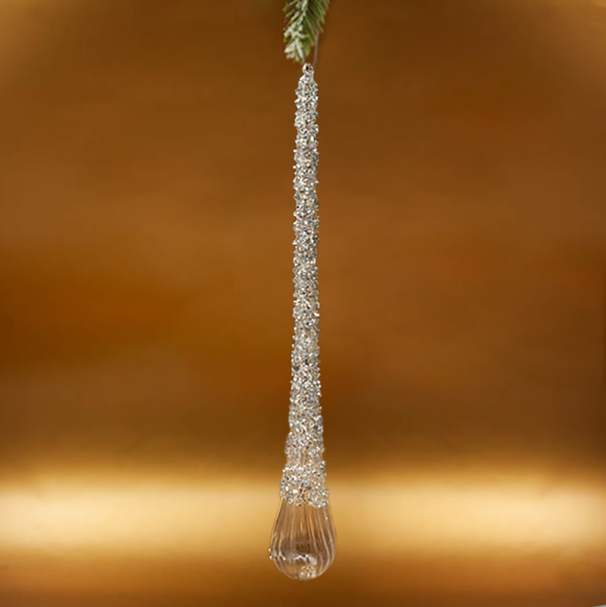 Украш елочХолидейКлассик Сосулька- капля гигант серебряная стек 4х4х30