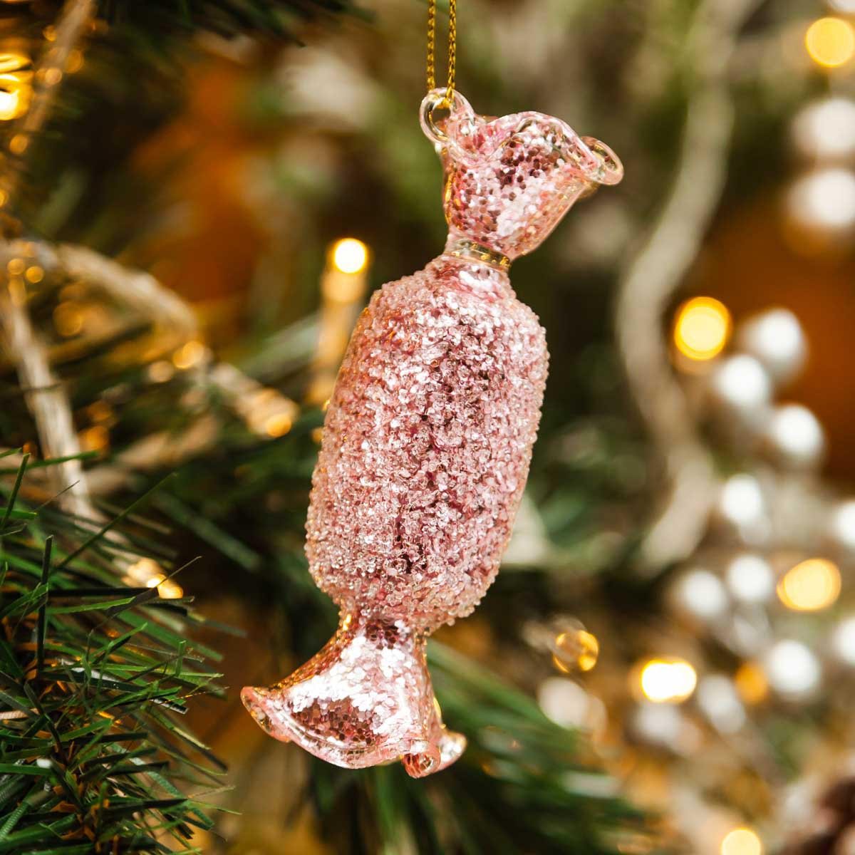 Украшен елочХолидей Классик Конфета Розовый лед стекло 3,5х3,5х9см