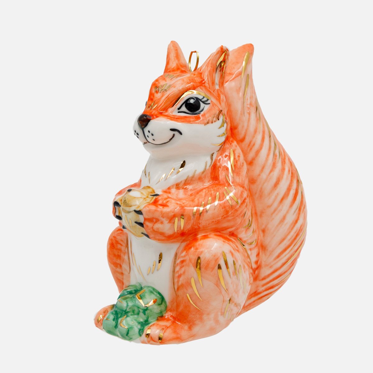Украшение елоч Лефортовский фарфор Белка с орешками рыжая большая фарф