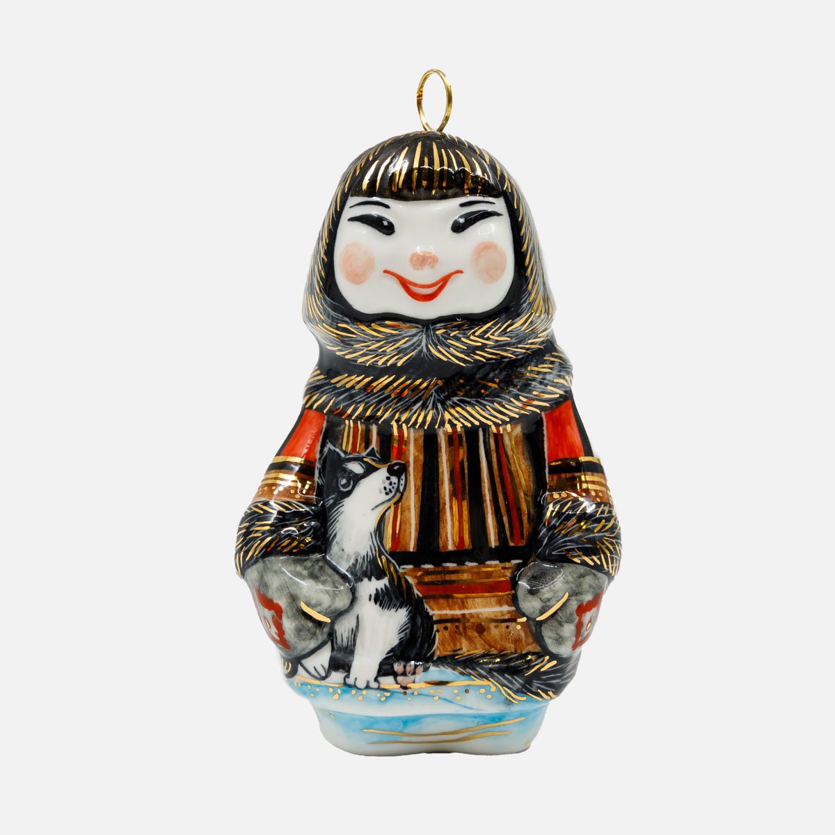 Украшение елоч Лефортовский фарфор Чукча с хаски Вип фарф 5,5х4,5х8,5