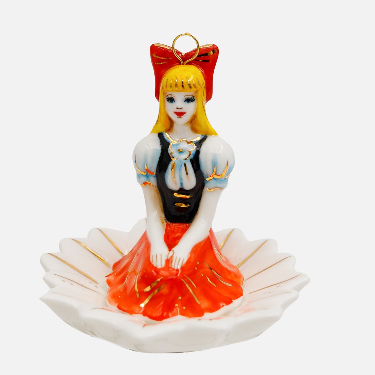 Украшение елоч Лефортовский фарфор Дюймовочка оранжевая фарфор 9х9,5х9
