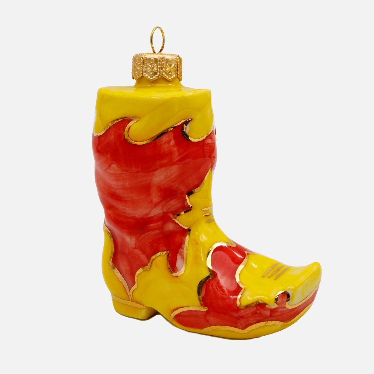 Украшение елоч Лефортовский фарфор Сапог желто-красный фарфор 4х8,5х9