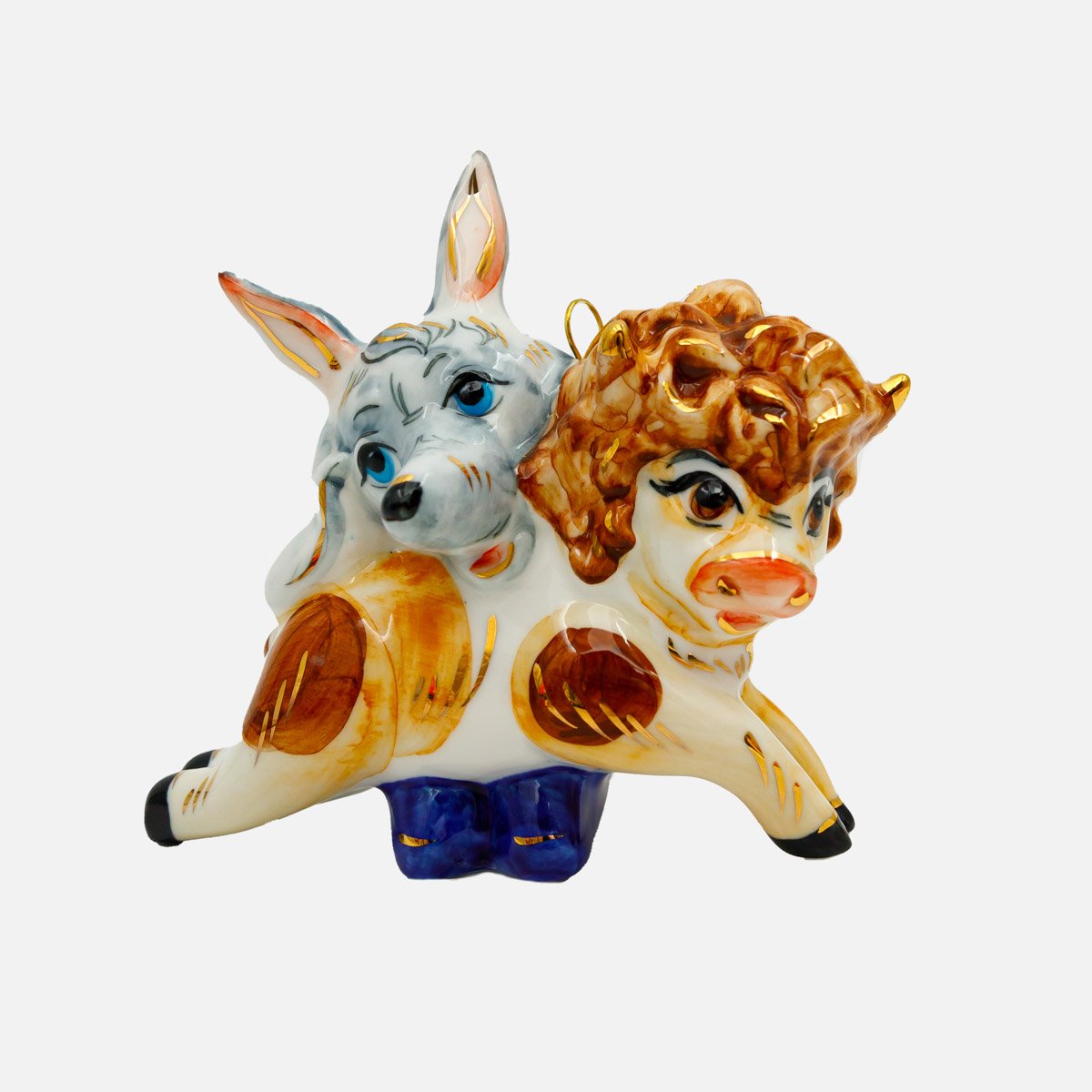 Украшение елоч Лефортовский фарфор Волк и теленок фарфор 12х6х9,5см