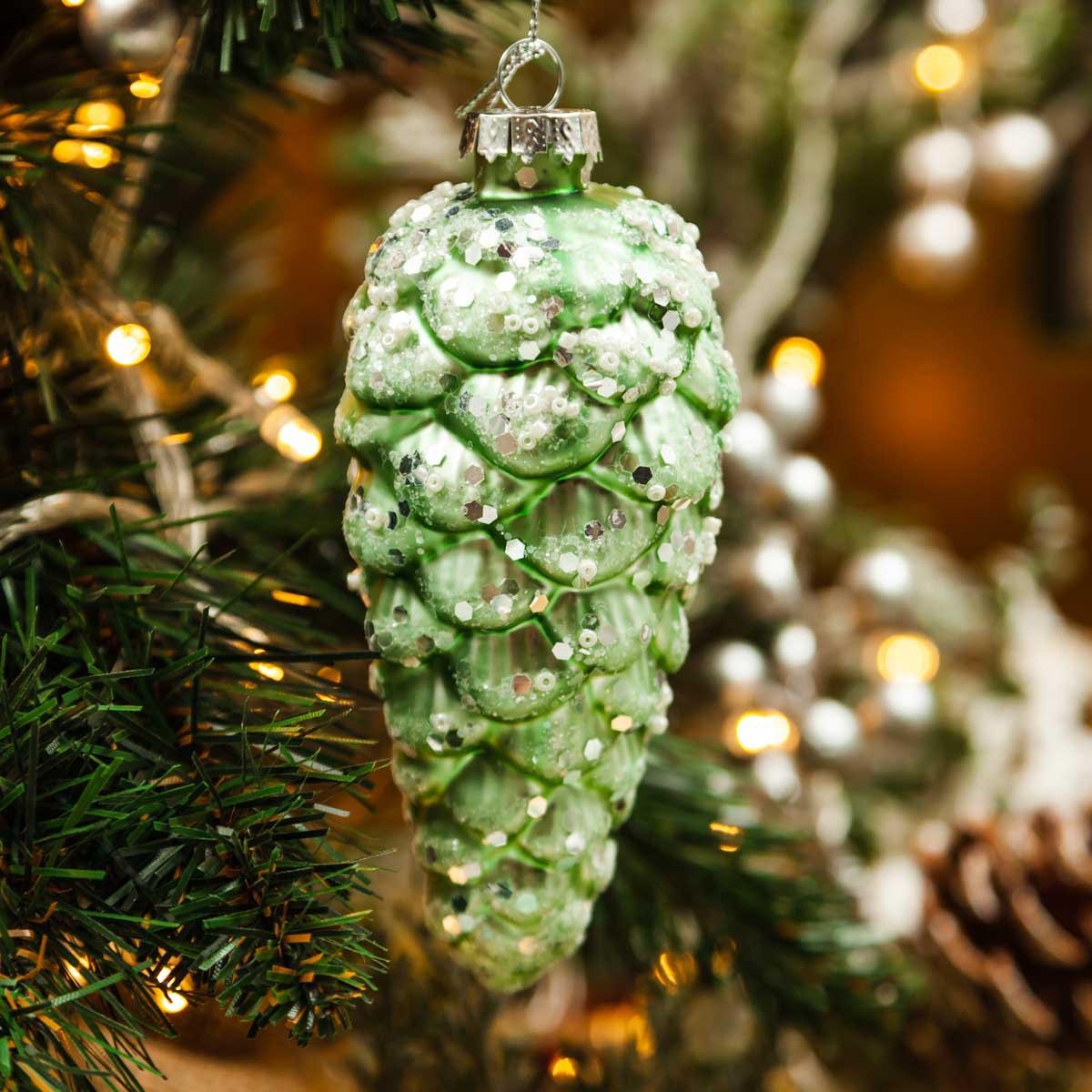 Украшение елоч Шишка Белый бисер сосновая стекло 5х5х12,5см YQL1589