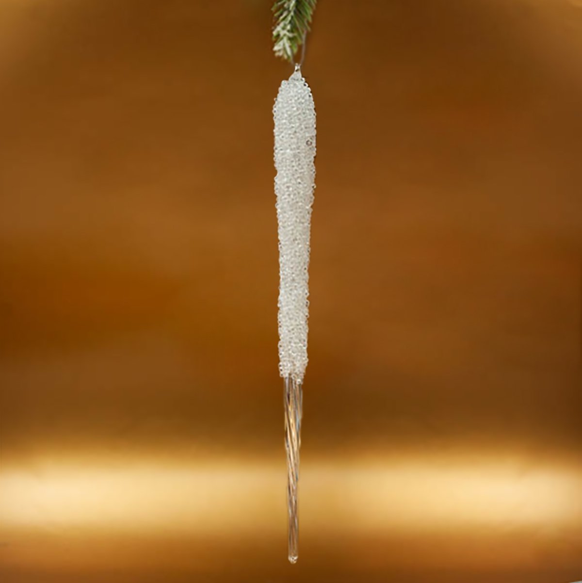 Украшение елоч Сосулька Белая вьюга витая стекло 2х2х30см AXM108