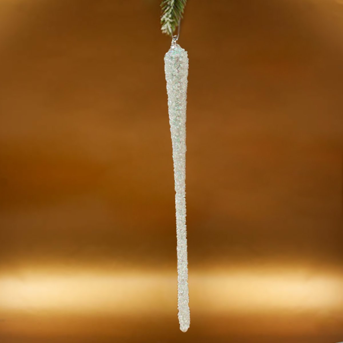 Украшение елоч Сосулька Искорки бело-серебряная стекло 2х25см YQL16