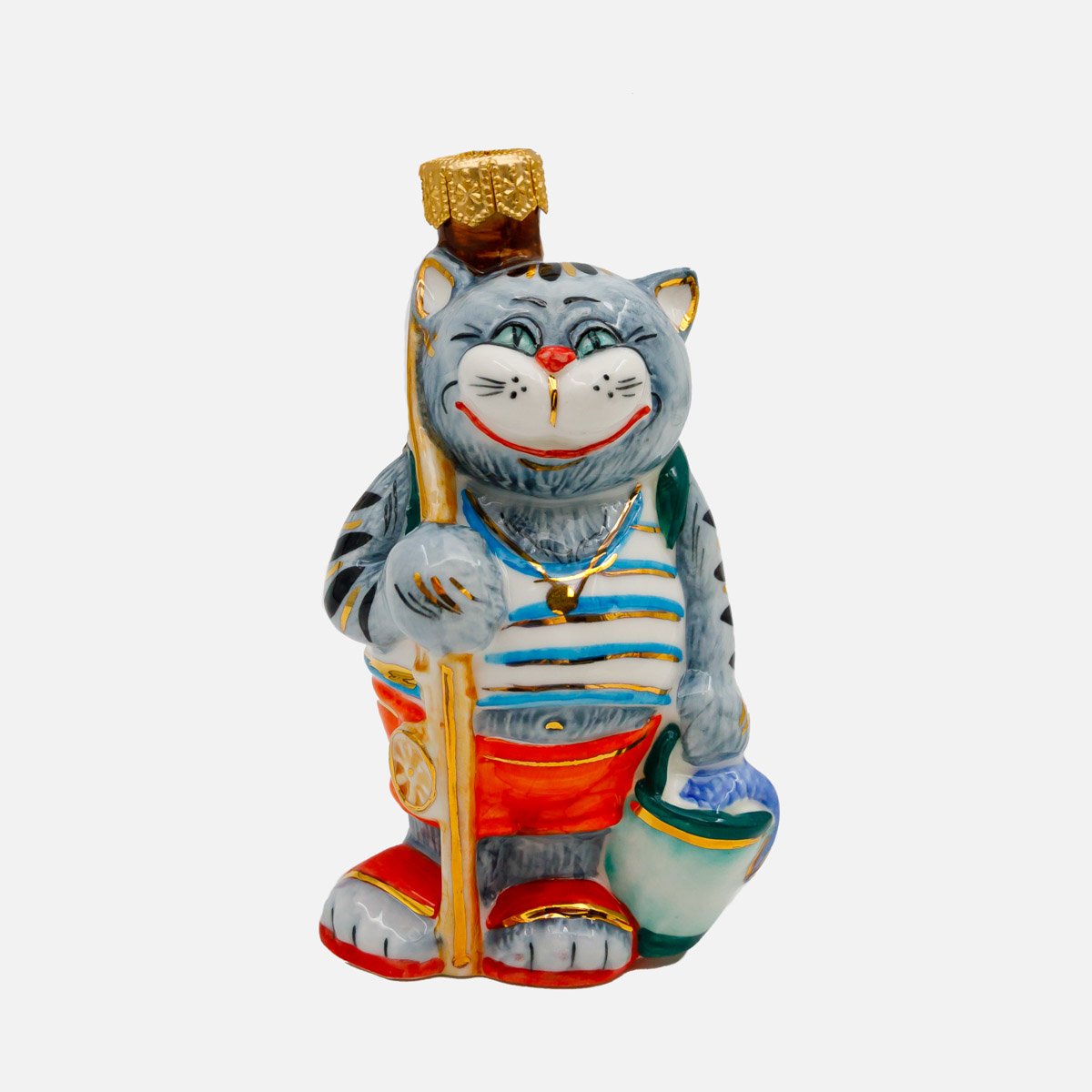 Украшение елочн Лефортовский фарфор Кот рыбак серый фарф6,5х6х10,5