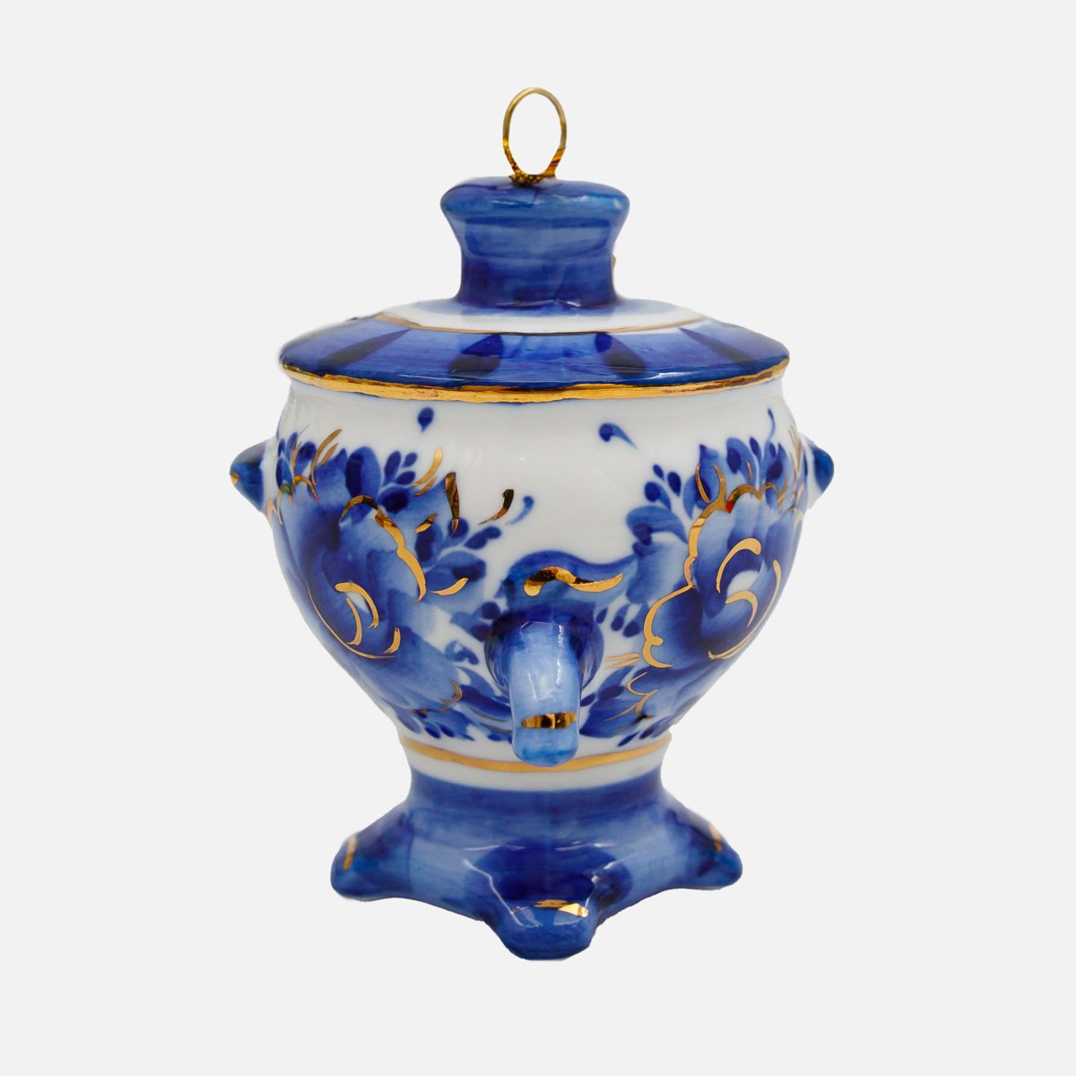 Украшение елочн Лефортовский фарфор Самовар кобальт фарфор 6х6,5х7см
