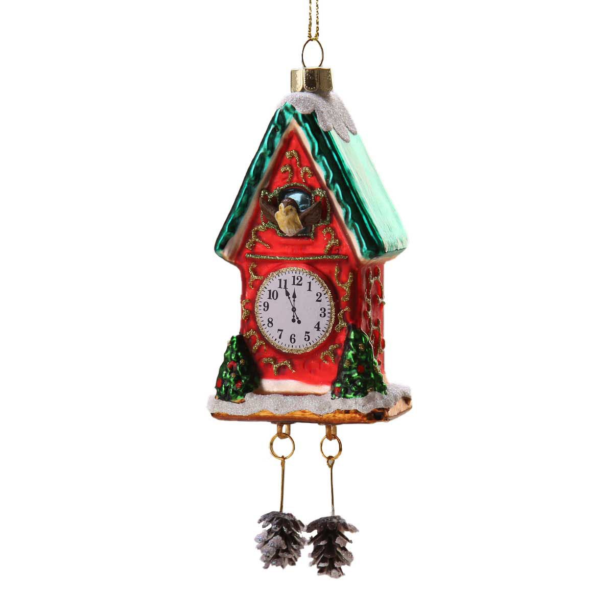 Украшение елочное Часы-ходикиЛесная сказка стекло 5,7х3х15см GLT450