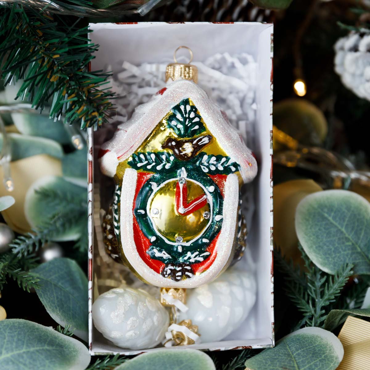 Украшение елочное Эвис Часики с кукушкой стекло 10см