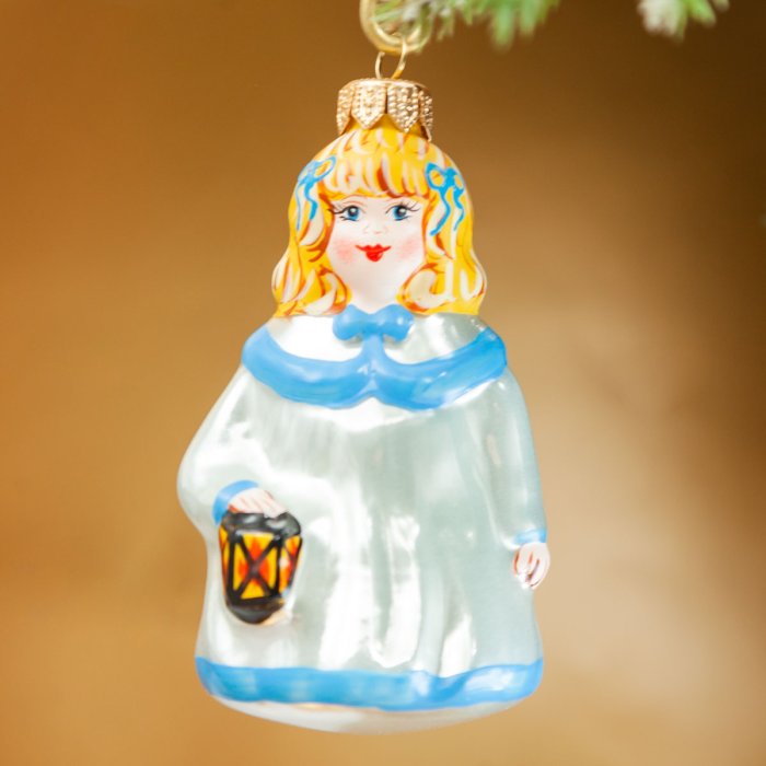 Украшение елочное Эвис Девочка с фонарем-01 с росписью стекло 11см