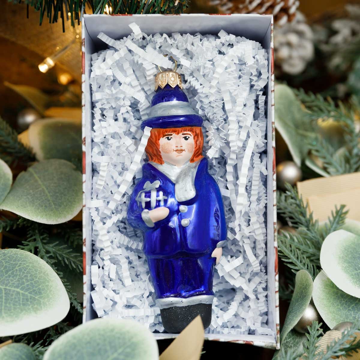Украшение елочное Эвис Мальчик в цилиндре стекло 12,3см