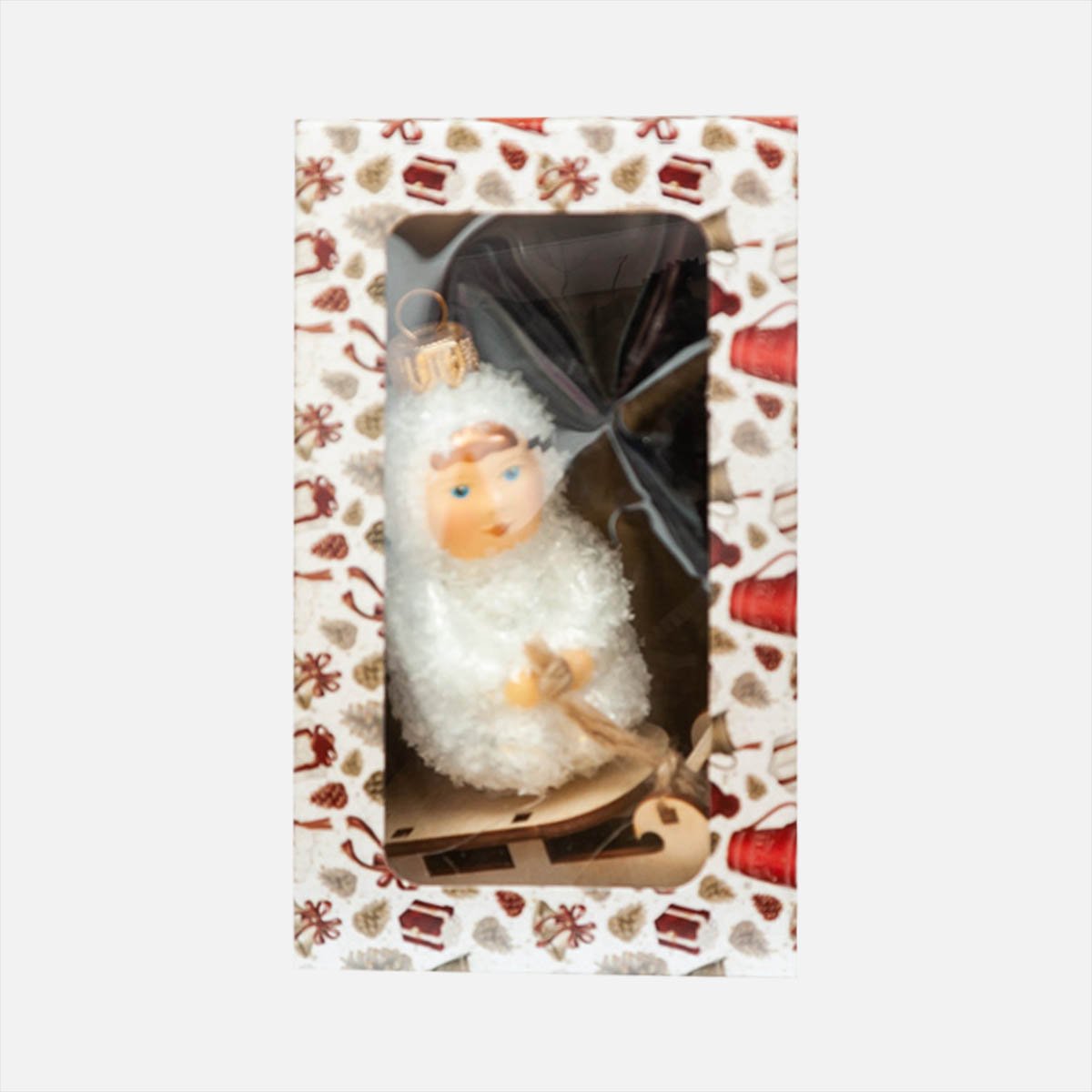 Украшение елочное Эвис Малыш на саночках-01 с росписью стекло 10,2