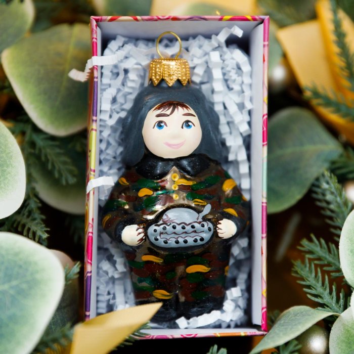 Украшение елочное Эвис Танкист-01 с росписью стекло 9см