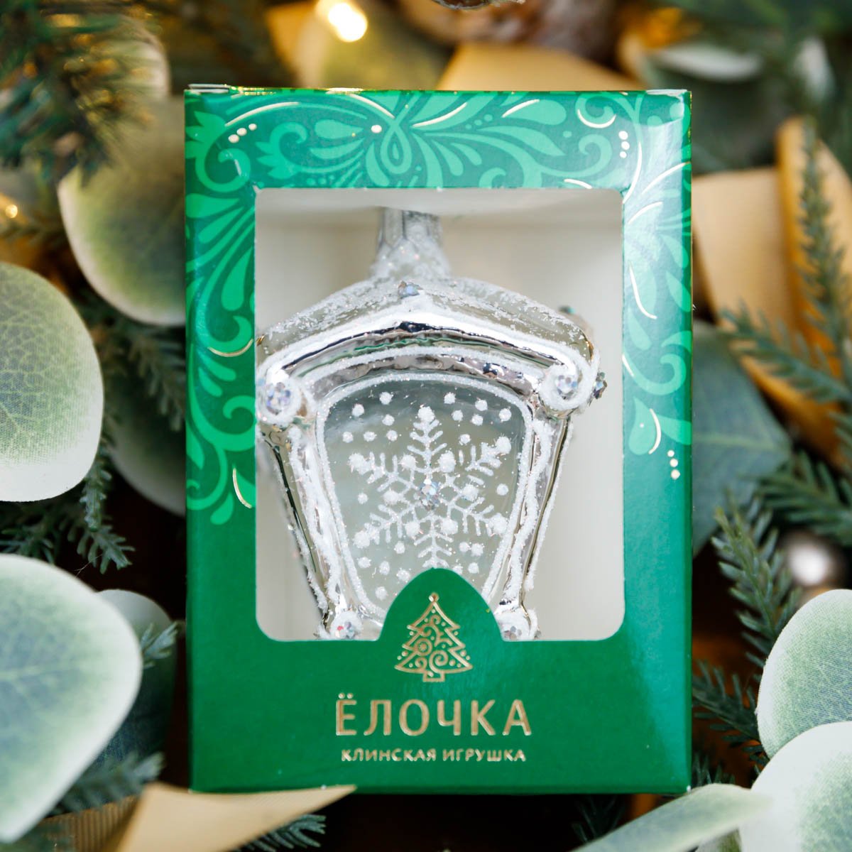 Украшение елочное Фонарь Снежинка Н 83мм стекло С2283
