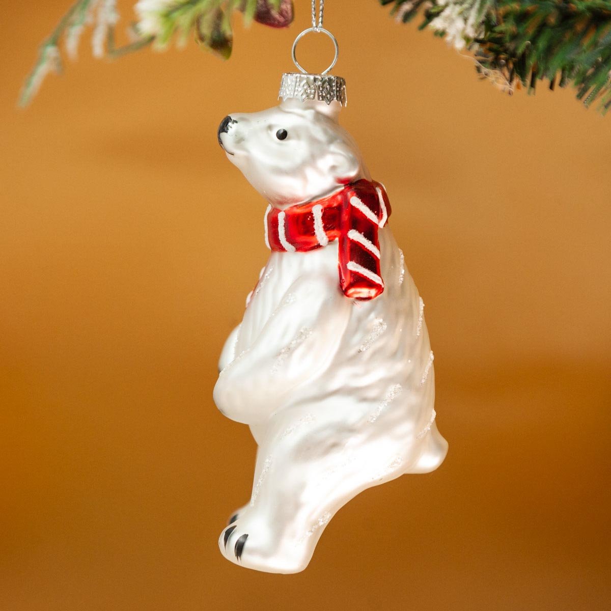 Украшение елочное Холидей Классик Белый мишка стекло 5,5х5,5х10см