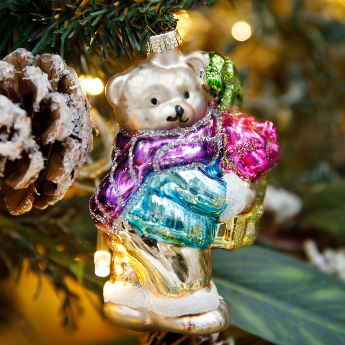 Украшение елочное Холидей Классик Фигурка Мишутка с подарками стекло