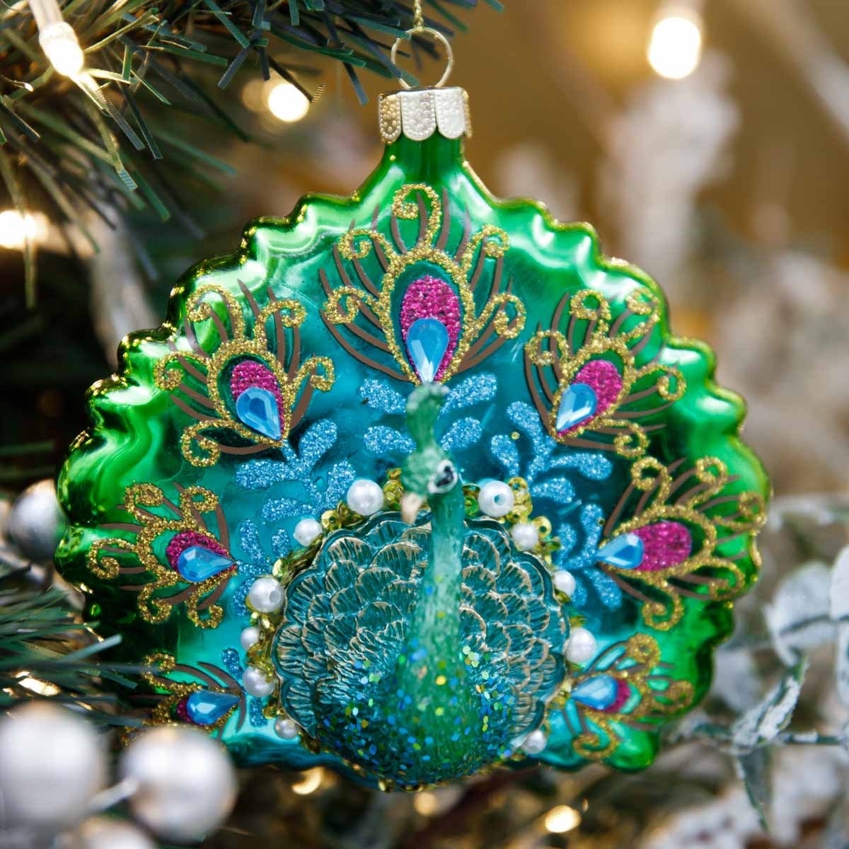 Украшение елочное Холидей Классик Фигурка Павлин стекло 10х5х10см