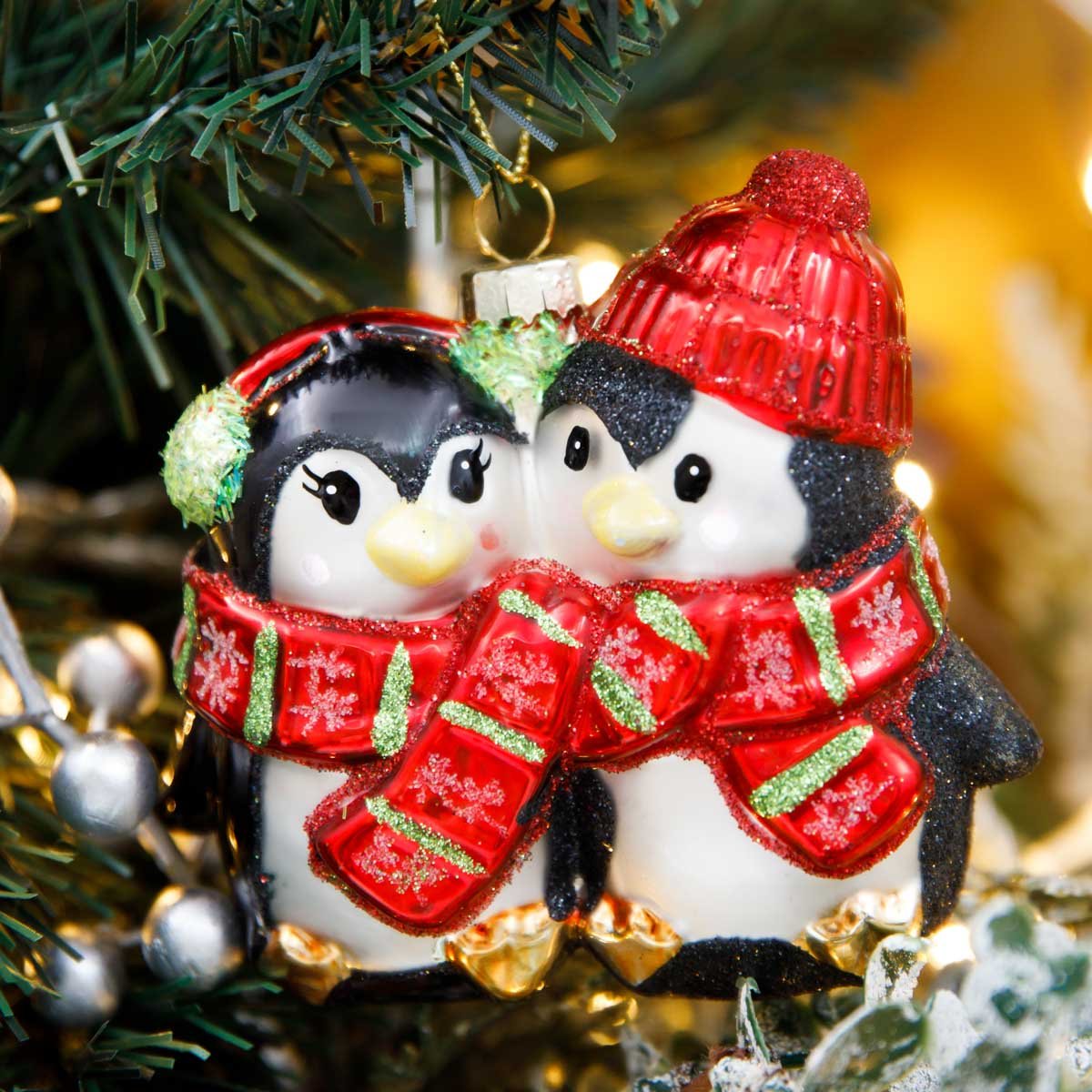Украшение елочное Холидей Классик Пингвины Парочка стекло 10х4,5х9см