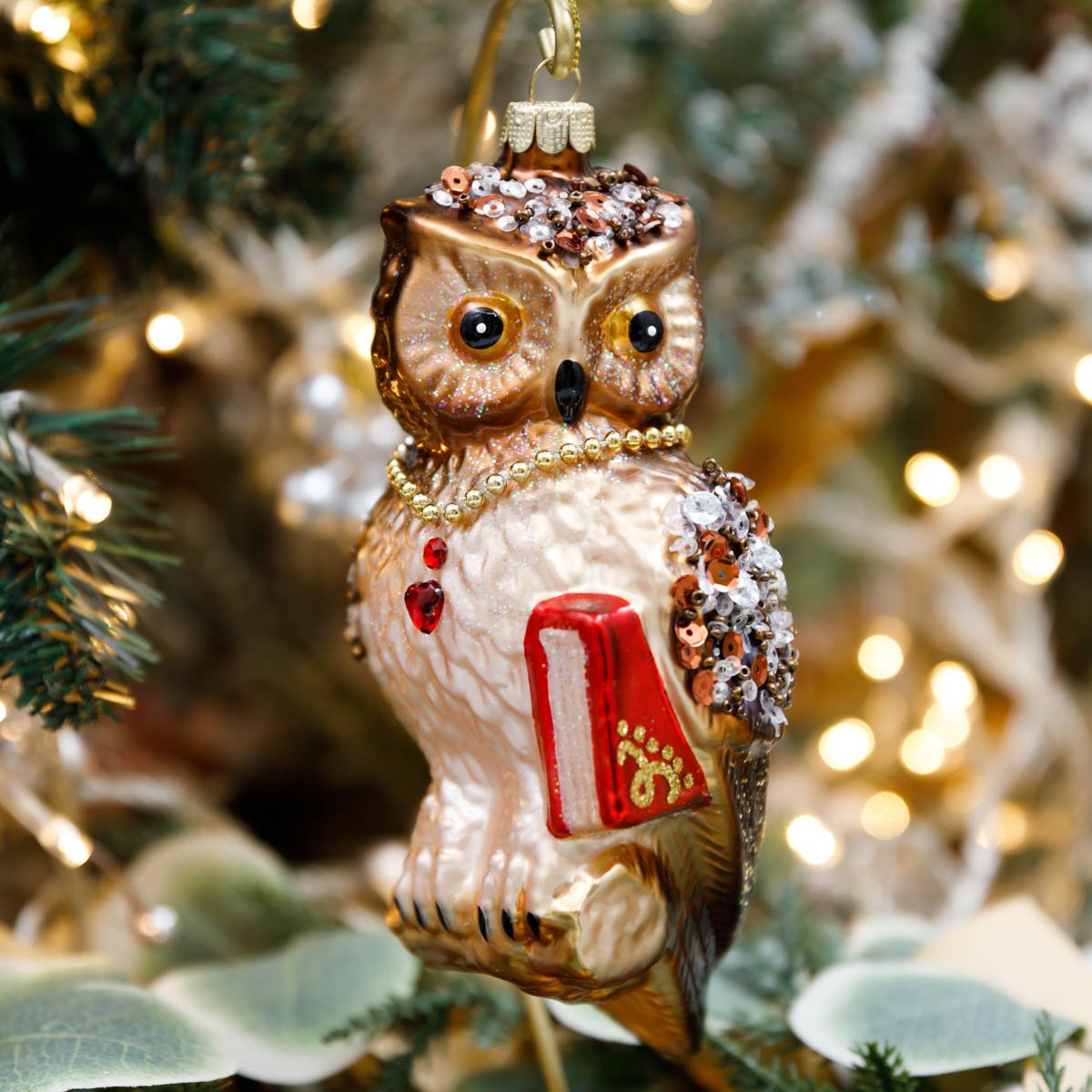 Украшение елочное Холидей Классик Сова Книголюб стекло 7,5х5х16см
