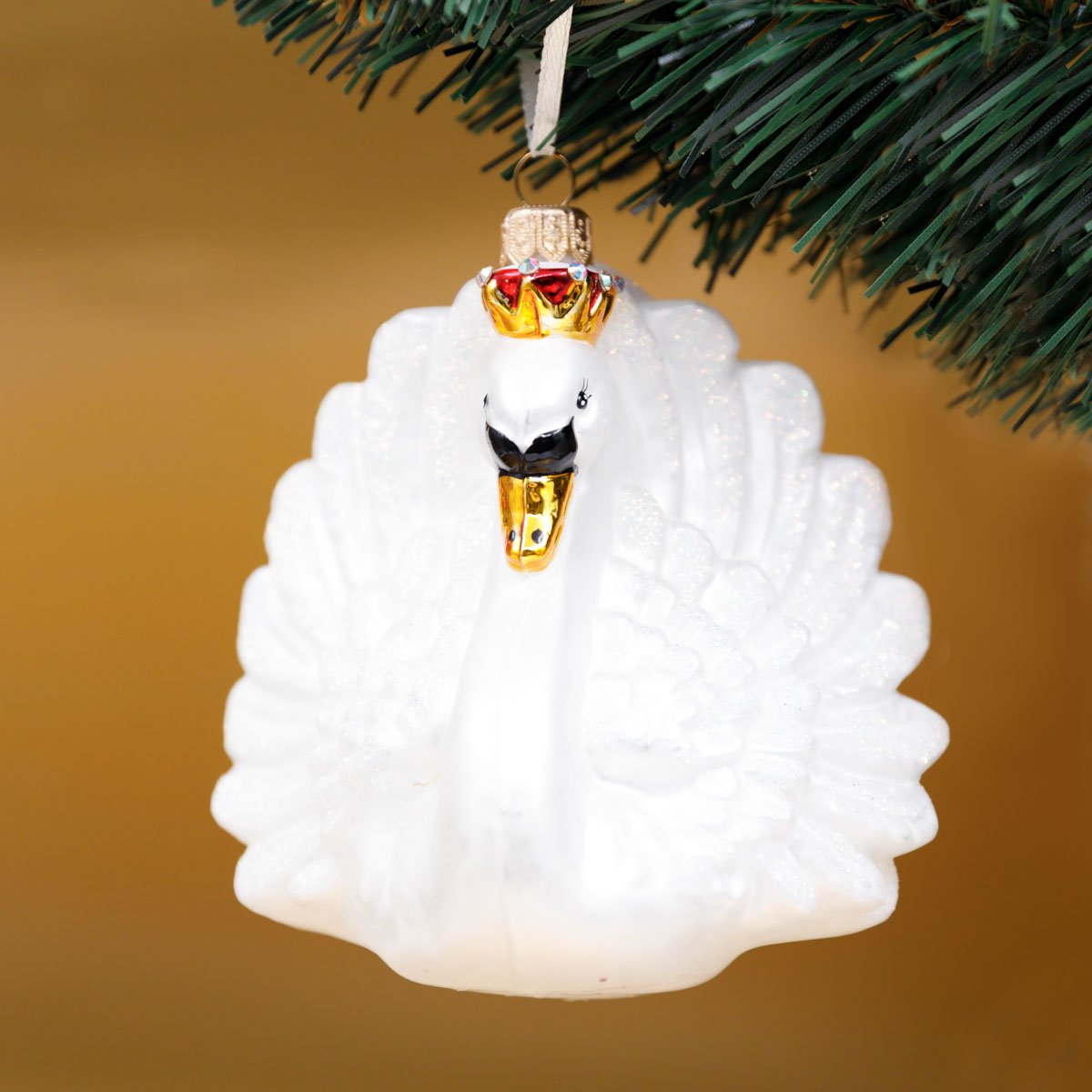 Украшение елочное Лебедь белый стекло 11,5х10,5см FBF553
