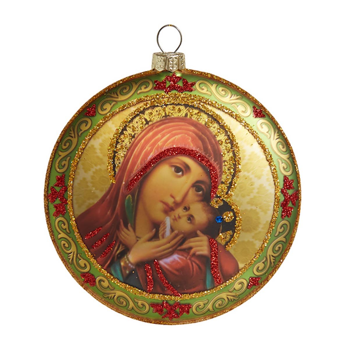 Украшение елочное Медальон Образ Божией Матери вусторон стекло 10см