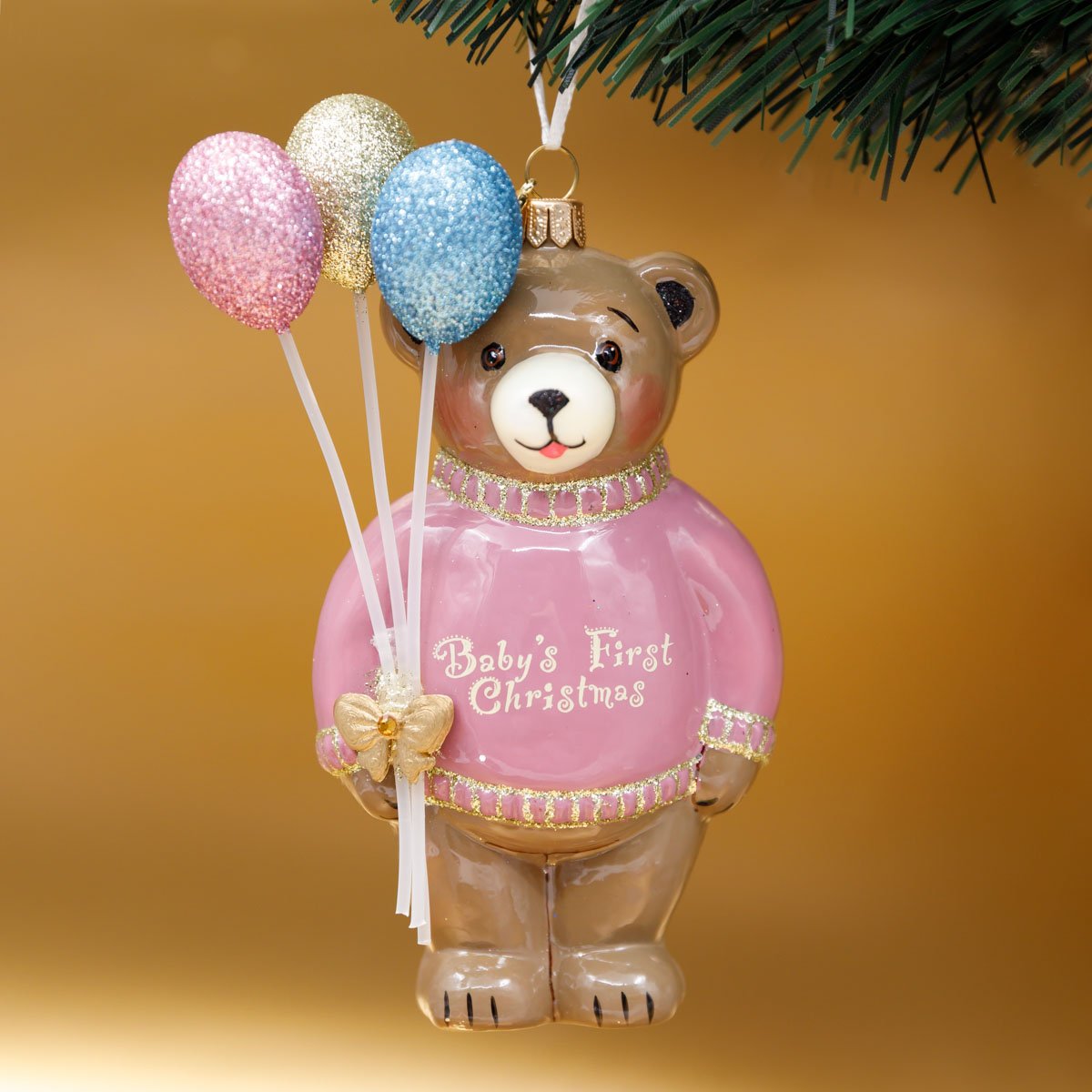 Украшение елочное Мишка ТеддиПервое рождество девочки стекло 12х5см
