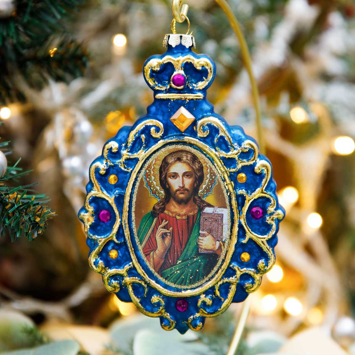 Украшение елочное Овал Рождество Христово винтаж стекло 9х2х13см