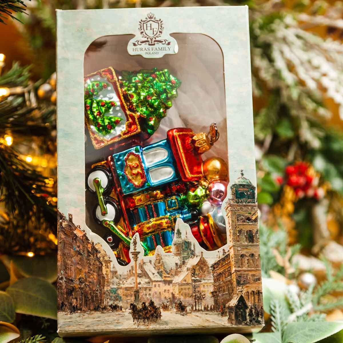 Украшение елочное Паровоз с вагончиком стекло 10х15,5см S412