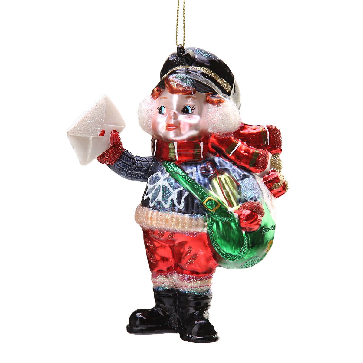 Украшение елочное Почтальон с подарками стекло 9,5х12,7см 83662