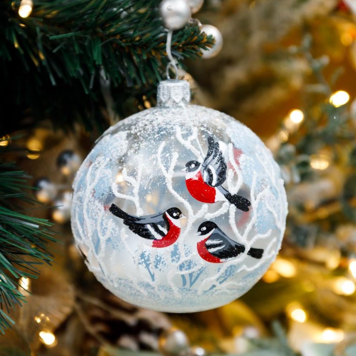 Украшение елочное Шар 6 Снегири д95мм стекло С2176