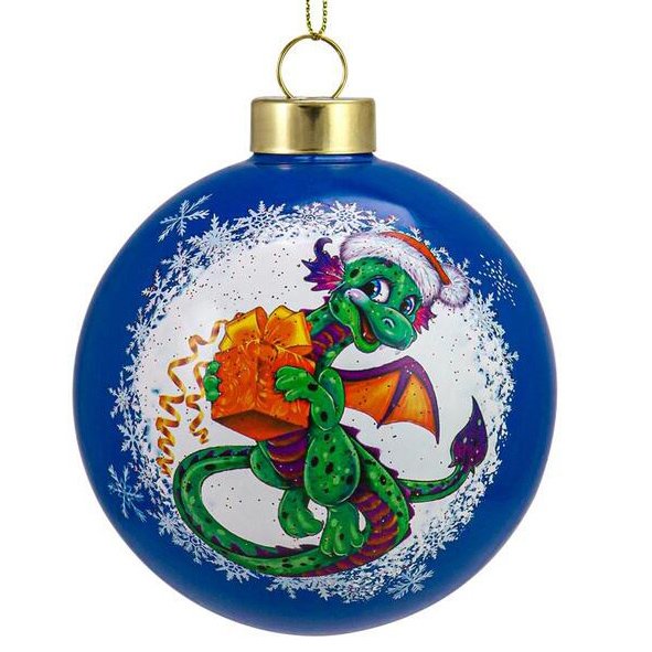 Украшение елочное Шар Дракоша с подарками 8см стекло ЕШ-4259