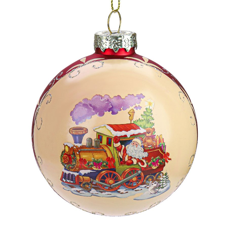 Украшение елочное Шар Рождественск паровозик 8см стекло ЕШ-4244