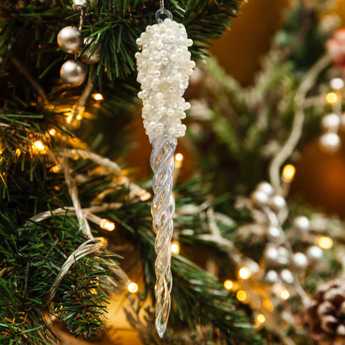 Украшение елочное Сосулька Голубой иней стекло 3х3х18,5см 234073