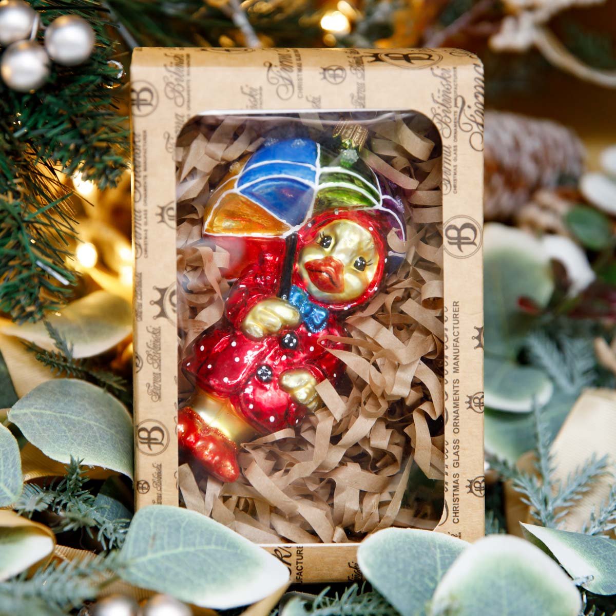 Украшение елочное Утя в красном плаще стекло 11х6см FBF605
