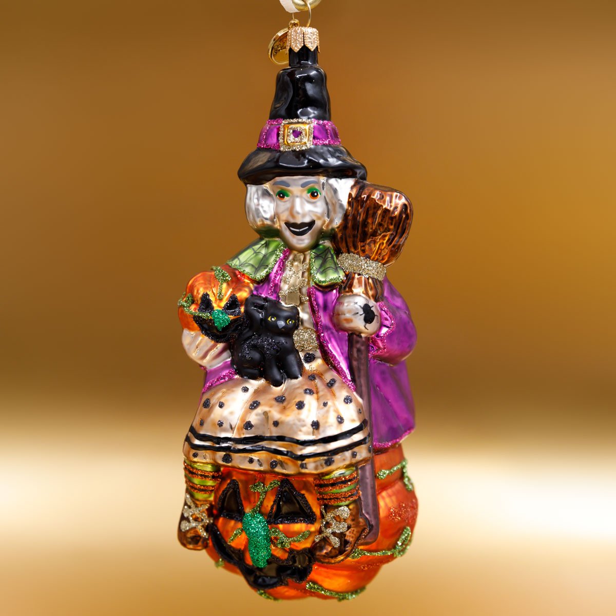 Украшение елочное Ведьма с котом стекло 18х7см 2022-116