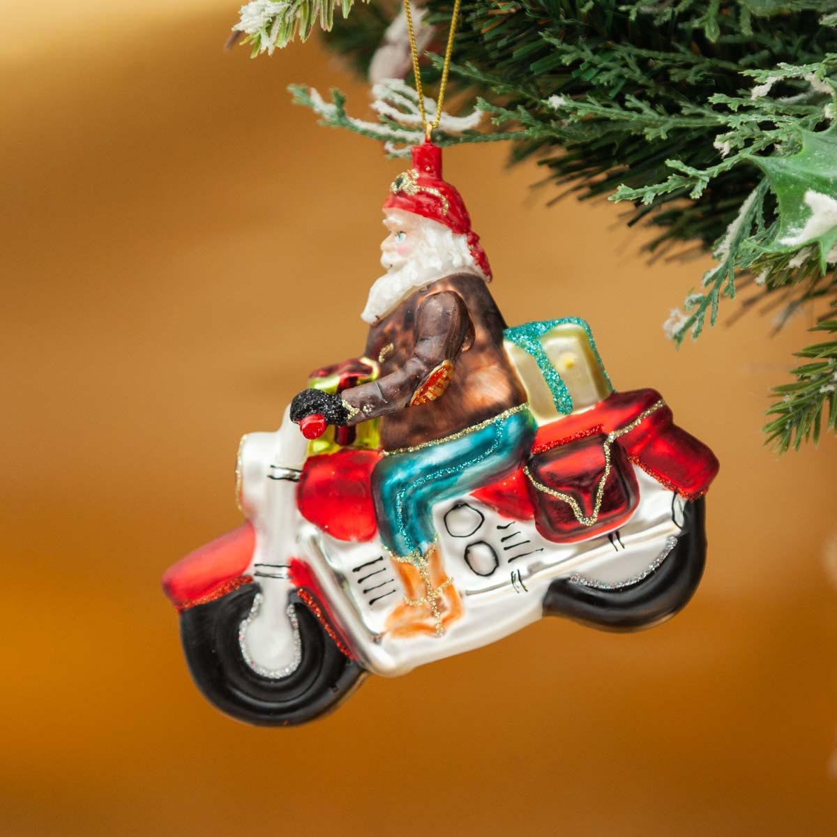Украшение елочноеДед Мороз на байке L12,5 W5 H11,5см стекло