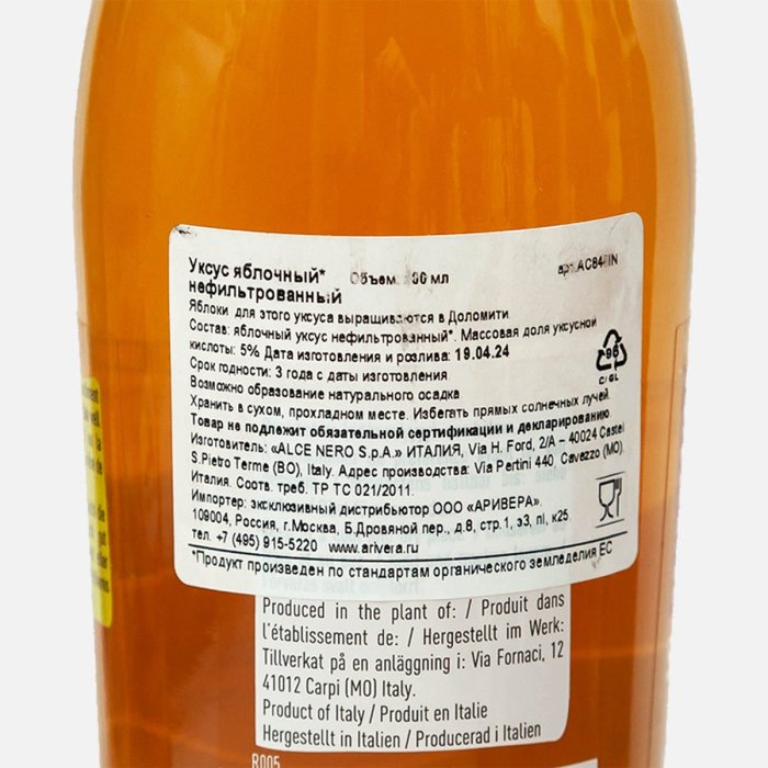 Уксус Альче Неро Яблочный нефильтрованный 500мл