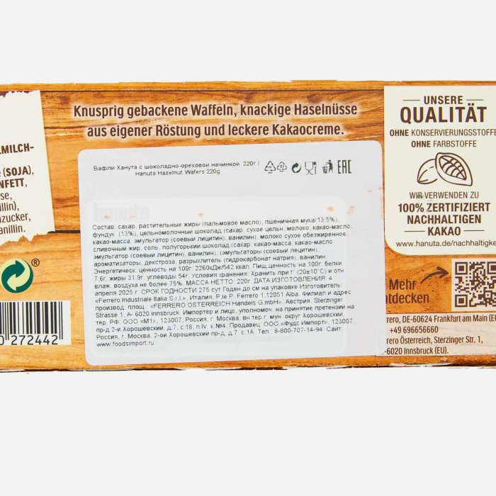 Вафли Ферреро Ханута 10'с с шоколад-вафельной начинкой 220г